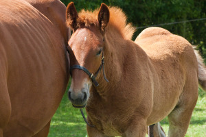 If you’ve not seen a Suffolk before, the first thing that will probably strike you is their size. Weighing in at around a tonne and up to 17.2 hh (this means around 70 inches from the ground to the withers – in other words getting on for six foot before you take the head and neck into account!). These are powerful, beautiful animals. It was their strength which made them perfect for agricultural work in the days before mechanisation. All Suffolks are chesnut (traditionally spelt deliberately without a ’t’).