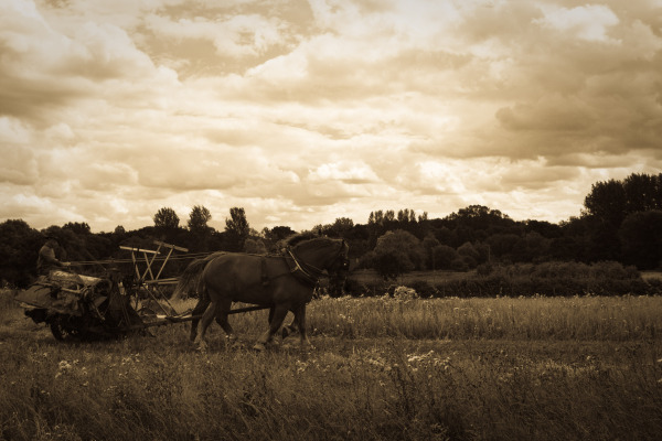 Crossing from the Workhouse to the Farm, Sunday was really about the horses. A little Lightroom wizardry to remove bystanders and a combine and you might be able to fool the occasional person that this is an old photo! As will be no shock to everybody reading this, I actually took the photo below at about 3 o’clock in the afternoon last Sunday. Harvesting with heavy horses is actually a surprisingly fast activity….for as long as they can travel in a straight line.
