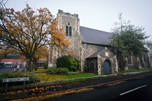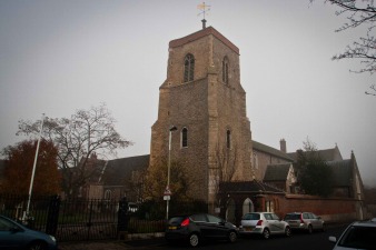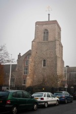 On reaching the junction, turn left onto Magdalen Street. Just before you hit the flyover, you will see St Saviour in its shadow to your right.