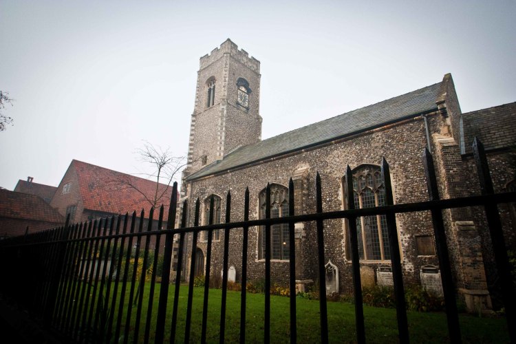 Turn left and walk east along Colegate. You will soon spot St Clement’s on your right.