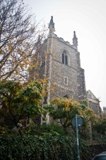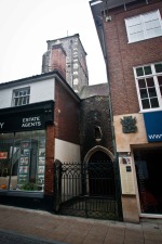Head out of the close through the archway and turn right onto Tombland. Behind the Edith Cavell pub is St George Tombland.